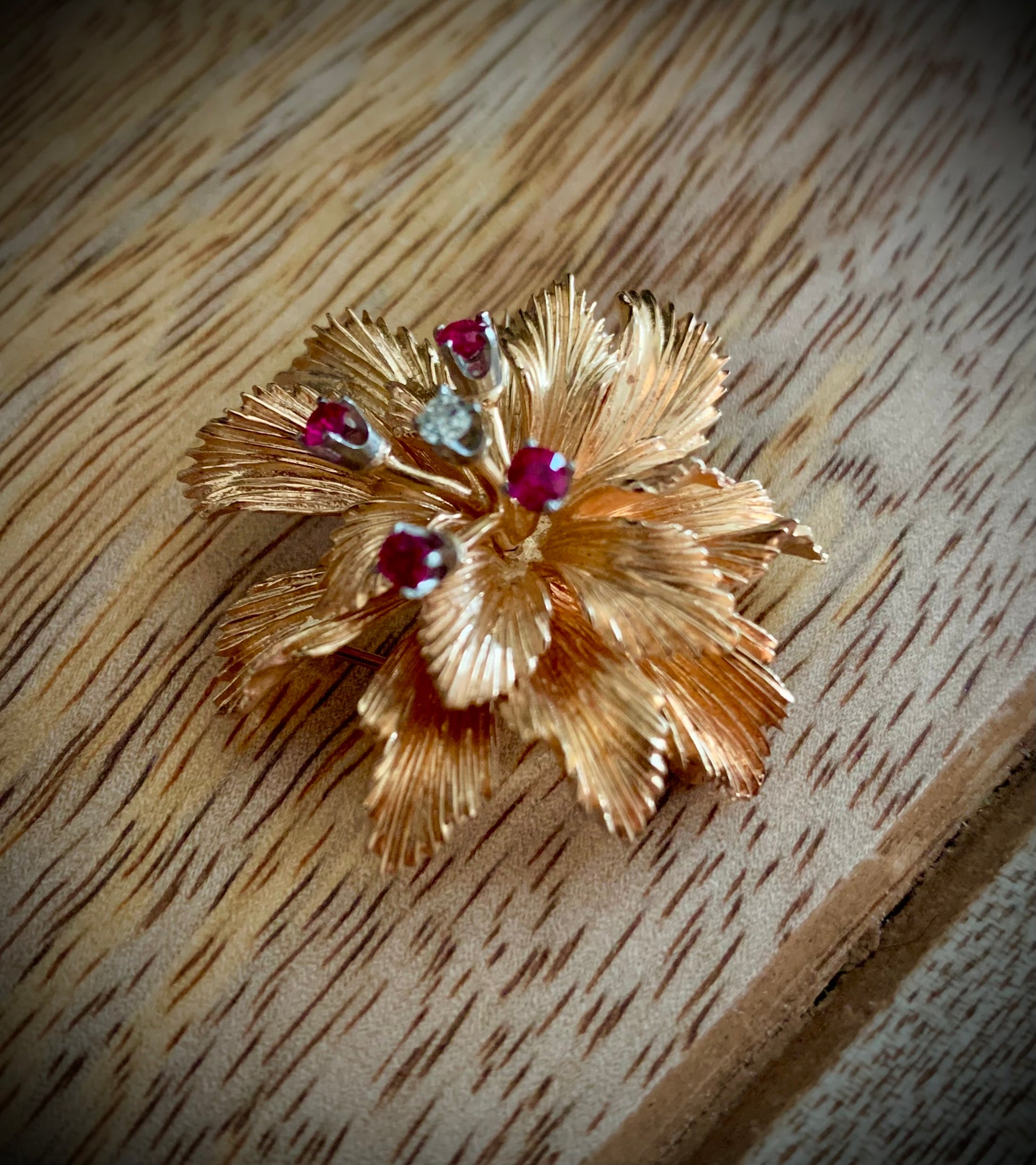 A solid gold, diamond and ruby ring